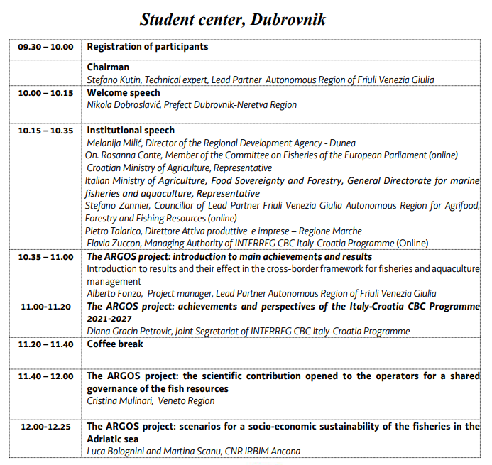 Argos project Final Conference in Dubrovnik (HR), 16th June 2023
