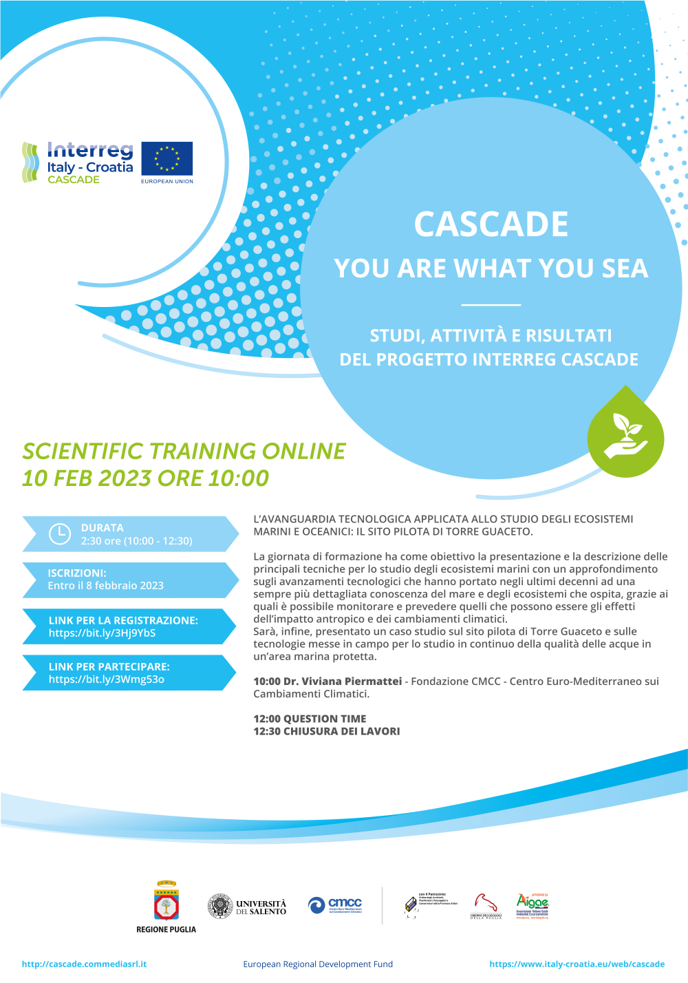 On February 10th, at 10.00am, the Scientific Training Online will deal with the cutting-edge technology applied to marine and oceanic ecosystems study: the pilot area of Torre Guaceto.