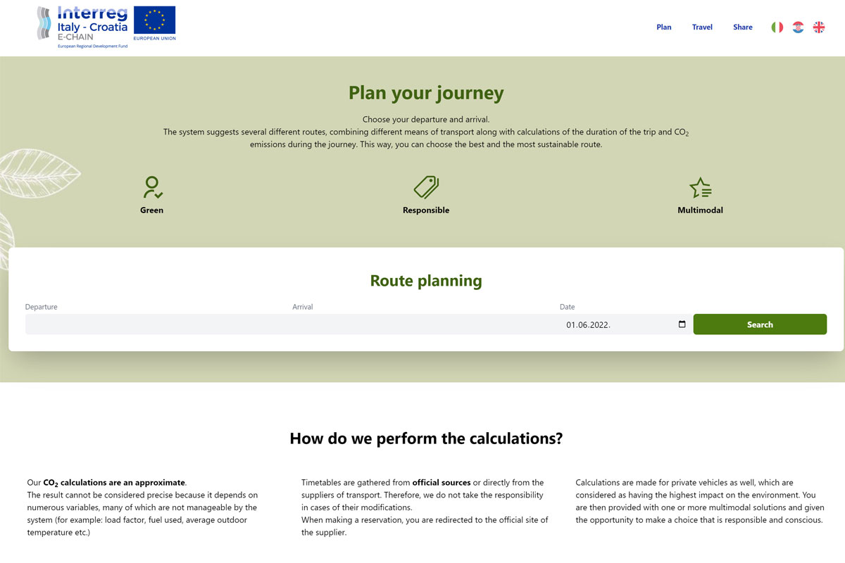 E-CHAIN (Enhanced Connectivity and Harmonization of data for the Adriatic Intermodal Network) main objective is to enhance connectivity and harmonization of data for the Adriatic Intermodal Network, through the realization of a modular integrated software (E-CHAIN platform) for the management of intermodal transport services in port areas for passenger transport. To enhance the current situation, E-CHAIN will focus on providing new services such as an improved Port multimodal infomobility system for the passengers, a ticketing system integrated with other transport modes, an advanced touristic co-marketing tool for the operators. These services will be designed and deployed in the selected pilot sites (Ancona, Split and Venice). A Business model suited to adapt the technology developed in the three applicative contexts will be created and specific needs will be taken into account.
