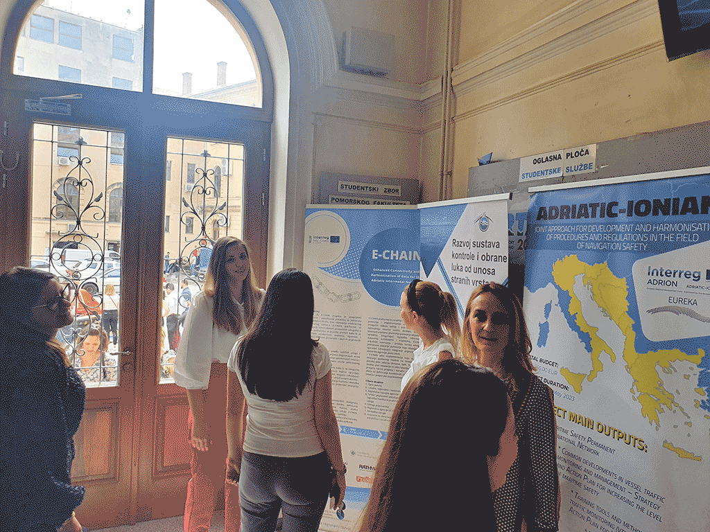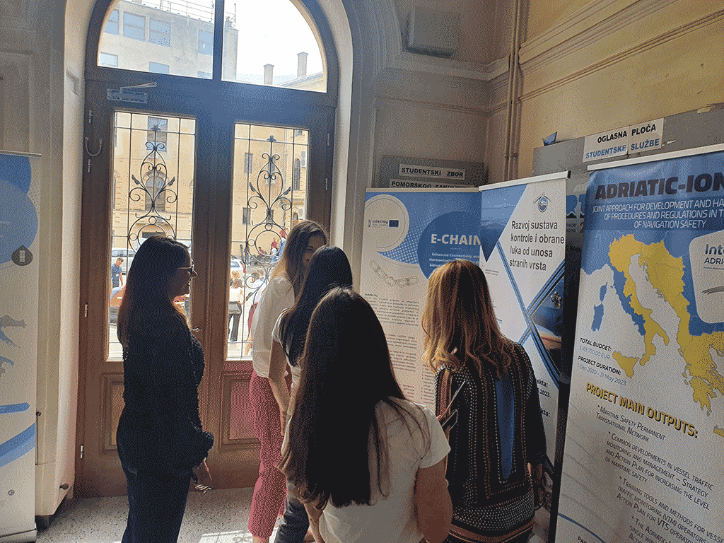 On June 9, 2022, the E-CHAIN project was promoted as part of the Career Day which was held at the Faculty of Maritime Studies, University of Rijeka. Career Day is a traditional event that once a year brings together experts from the maritime sector such as the port and port authorities, numerous shipping agents (Maersk, CMA-CGM, etc.) and numerous agencies involved in the employment of seafarers.