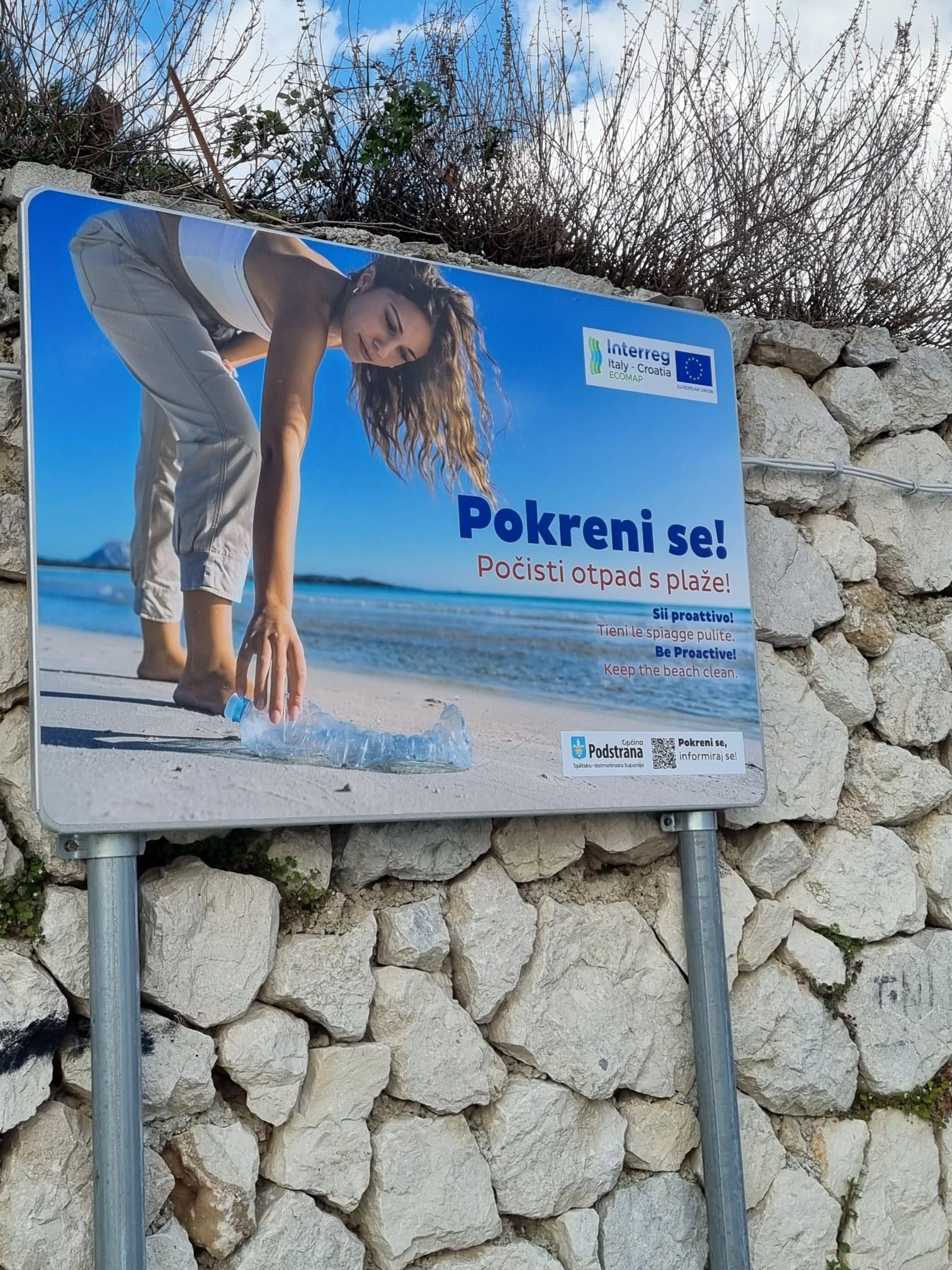 Within Ecomap, the Municipality has procured new equipment for decontamination of marine sediment at the mouth of the river Žrnovnica and its reuse to supplement the beach. It is a type of boat, a dredger, which will dredge the existing sand, silt, and gravel from the seabed that will be transferred directly to the shore. The coastal area of the Municipality of Podstrana is exposed to the river Žrnovnica, which brings suspended particles and waste material that settles, and also affects the area of the nearby port, and dredging will contribute to easier and safer access to ships. After drying and exposing the sediment to the sun, it will be microbiologically decontaminated to a sufficient extent and will be suitable for feeding the beach. During the project, two mobile recycling yards were also procured, to reduce the amount of unclassified waste in the coastal area of Podstrana. Panels have been installed to raise the environmental awareness of locals and visitors to the Municipality of Podstrana to treat our coast as responsibly as possible and keep it clean and tidy.