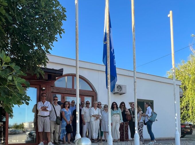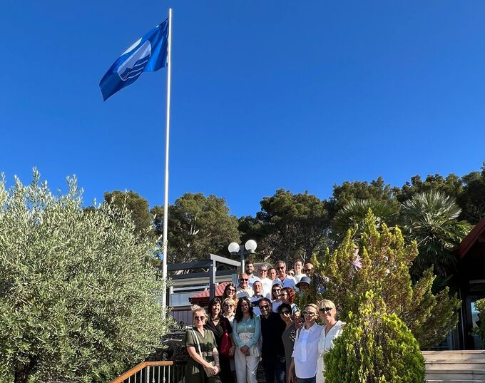 On Tuesday, June the 7th, 2022, the project partners visited the project implementation area, two marinas, where they visited wastewater facilities, the infrastructure investments within the ECOMAP project, and attended to the realization of one of the project's goals - raising the Blue Flag at three locations: the port of Špinut and the port and beach of Strožanac. Mr. Stipe Čogelja, Deputy Mayor of Split Dalmacija County, participated in the ceremony of the blue flag rising in Špinut and congratulated the Ecomap project team on such excellent work. Mrs. Tea Ivanišević, Programm Communication Manager of the Interreg V A Italy – Croatia, Joint Secretariat, has also joined the event and visited the pilot sites. The Blue Flag is an internationally esteemed tourist label that many tourists take as the main criterion when choosing their holiday destination. It points to clean, tidy, safe, and well-maintained beaches and marinas. It is the most recognized model of environmental education and public information and unites the tourism and environmental sectors at the local, regional and national levels.