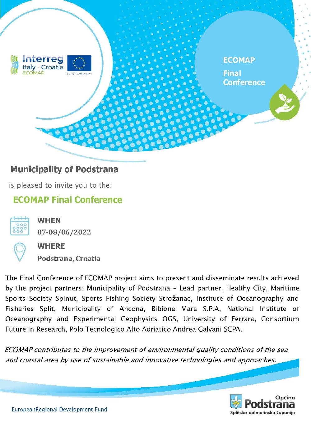 The Final Conference of ECOMAP (Ecosustainable management of marine and tourist ports) project will be held in Podstrana on the 7th and 8th of June 2022.