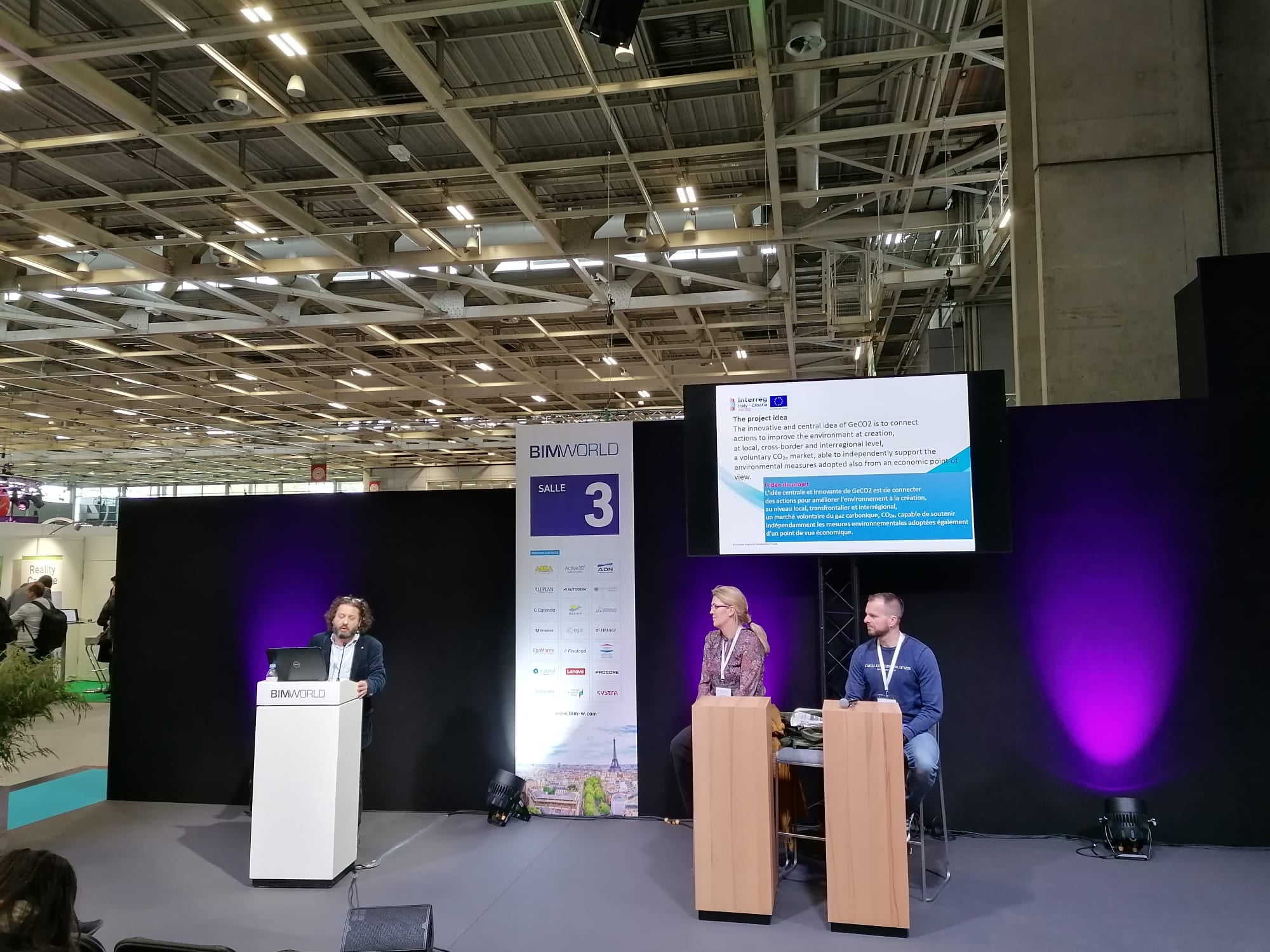 The Geco2 project has been presented at the Bim World Bas-Carbone fair held in Paris. On april 6, 2022 Ivana Devic, Deputy Director and Project Manager of AGRRA, and Leonardo Marotta, technical manager of Arpae Emilia-Romagna, held a workshop about the implementation of GECO2 with special emphasis on the project’s pilot activities. The activity was organized in collaboration with Rera sd, another partner of Geco2.