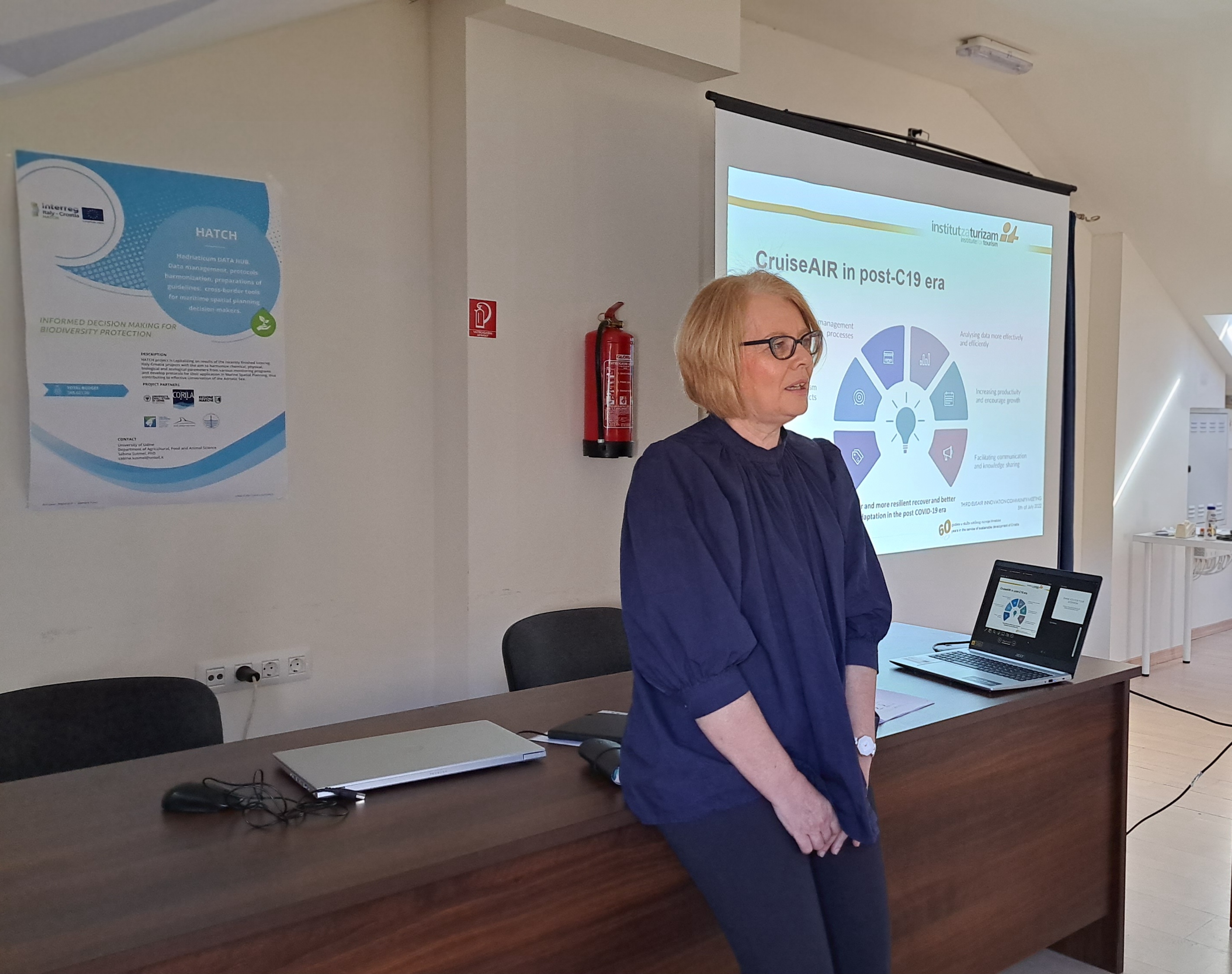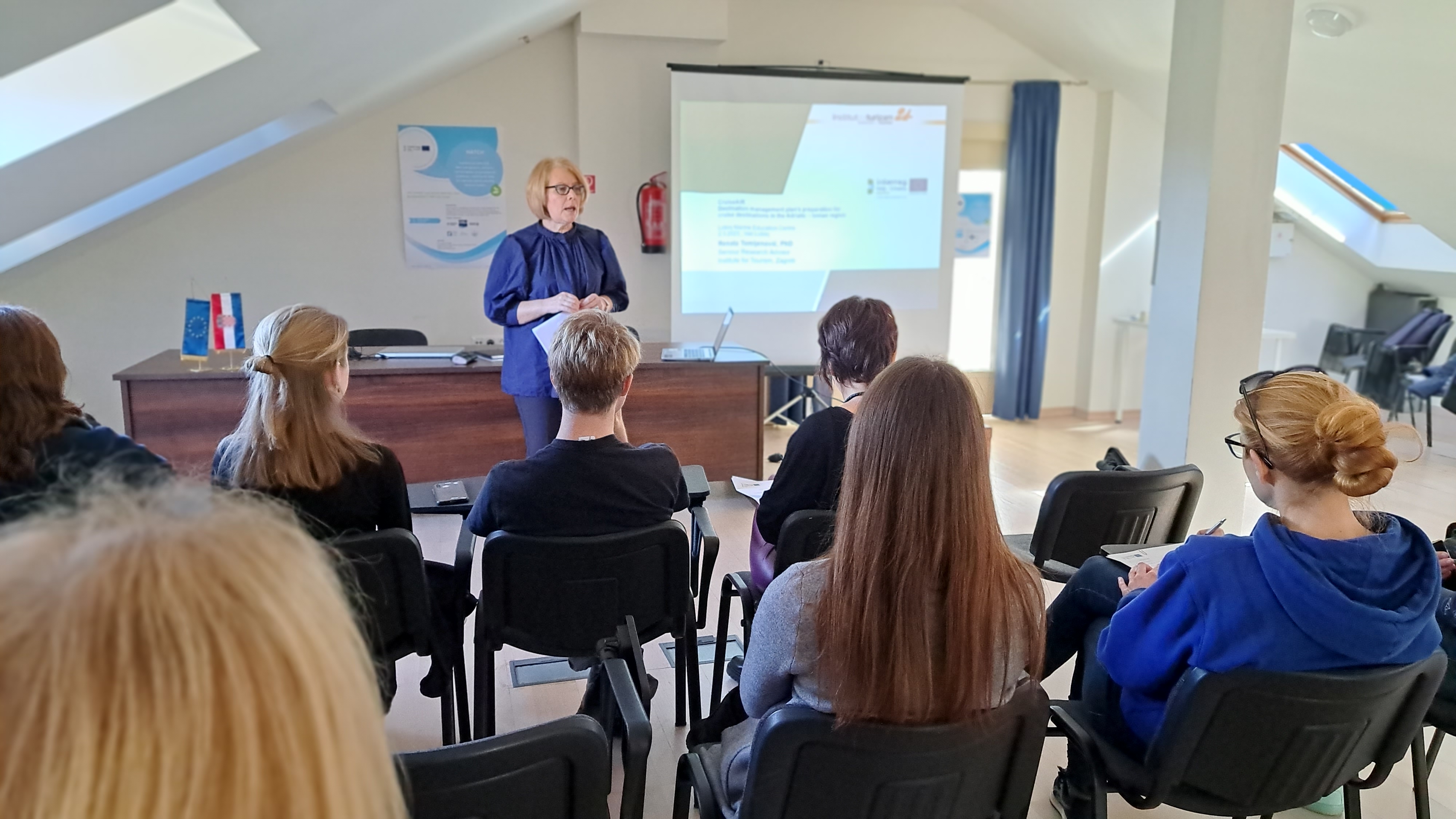 With the intention to raise awareness through the networking opportunities and exchanges of experiences and opinions, within HATCH project Blue World Institute has organized joint event with EU Strategy for the Adriatic and Ionian Region (EUSAIR) action. At the public event organized in Veli Lošinj, Croatia on 17th of March, Mrs. Renata Tomljenović, Senior Researcher Advisor, from the Croatian Institute of Tourism introduced us to the CruiseAIR - Destination management plan’s preparation for cruise destinations in the Adriatic – Ionian region. Aim of this project is to improve the sustainability of cruise tourism destinations in the Adriatic-Ionian Region by addressing product and management dimensions through a strategic framework. Within the framework of the HATCH project, cruising tourism is one of the important factors to consider in the process of Maritime Spatial Planning. This was therefore a great opportunity to discuss clear links between initiatives in both EUSAIR and Interreg projects aiming at protection of the Adriatic Sea.