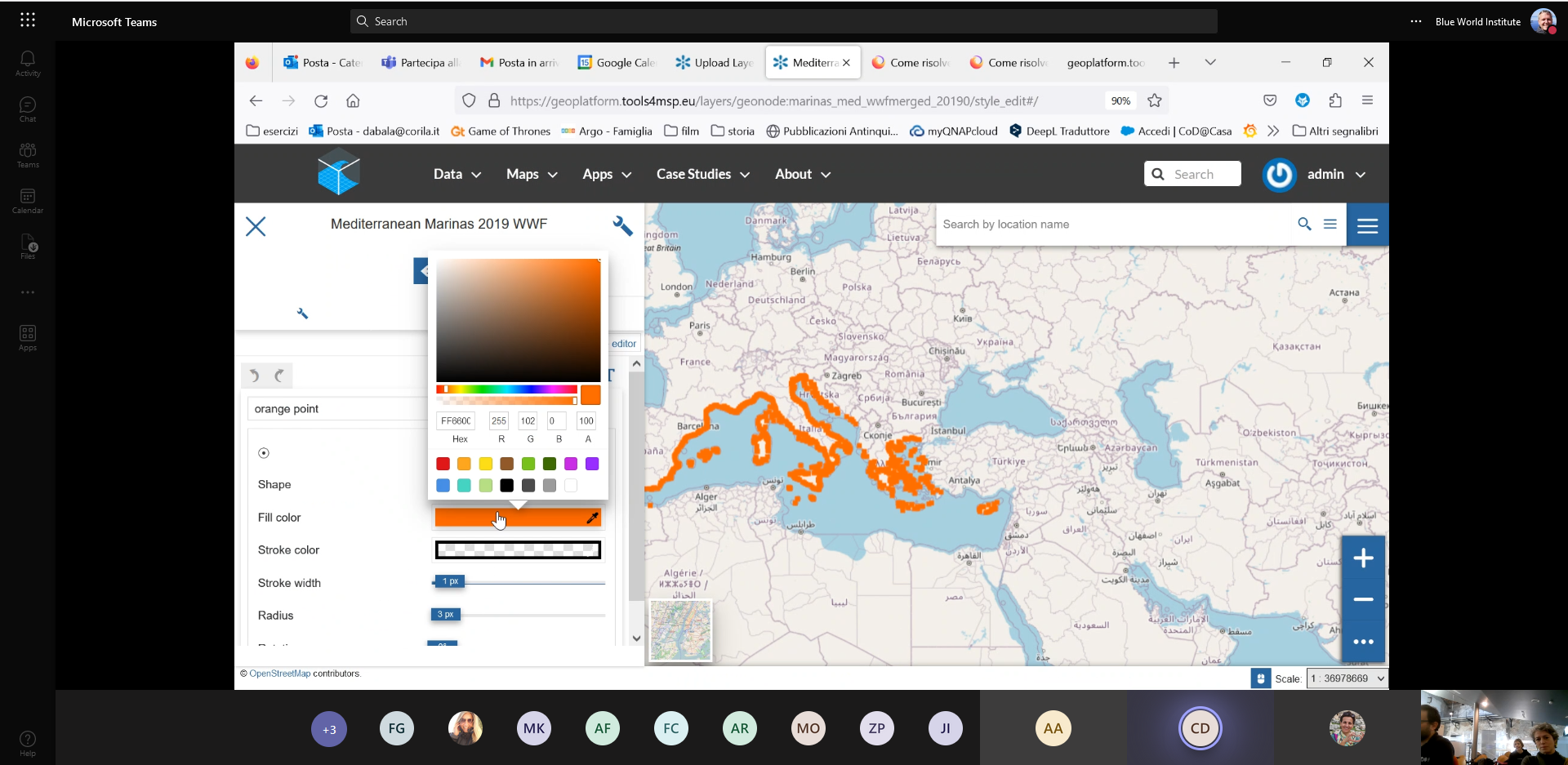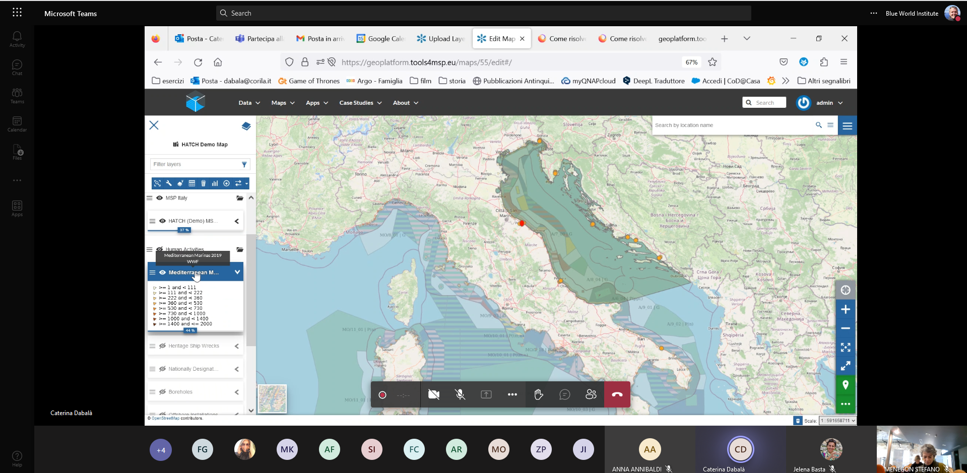 The Tools4MSP was developed by the CNS-ISMAR as a geoplatform which enables hosting, sharing and visualization of data layers and maps, with intention to serve as a support tool for researchers and decision-makers in the topic of Maritime Spatial Planning (MSP). As such, this geoplatform enables integration of various geo-referenced data, including data on chemical, microbiological or acoustic pollution, marine traffic and distribution of species and habitats. Capitalizing on previous Interreg Italy-Croatia projects which collected such data, HATCH project partners will use Tools4MSP geoplatform for data harmonization and sharing and make its use an integral part of the exploitation plan and guidelines for planners and policy makers. Thus, the aim of the workshop was to train HATCH project staff on how to use many tools and functionalities of the Tools4MSP geoplatform.