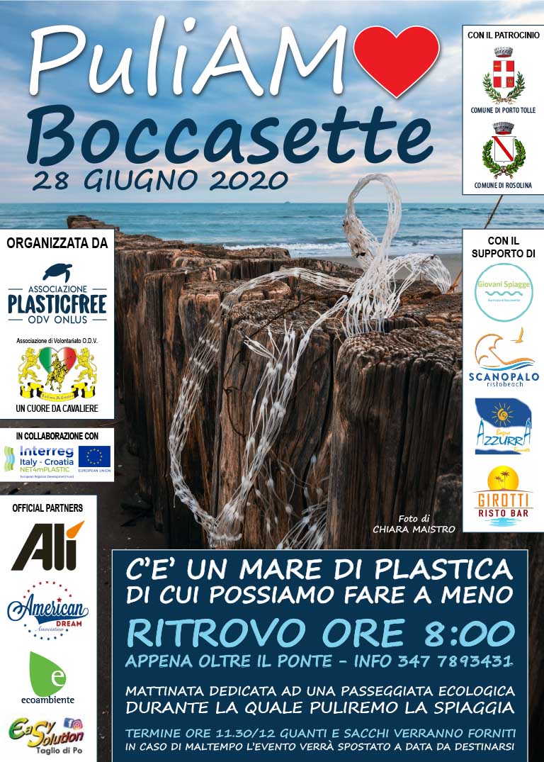 NET4mPLASTIC will collaborate with the association Plastic Free at the event "PuliAMO Boccasette", one of the areas of the Po Delta investigated by our project. During an ecological walk, together we will free the beach from the sea of waste that pollutes our coasts. Join us!!!