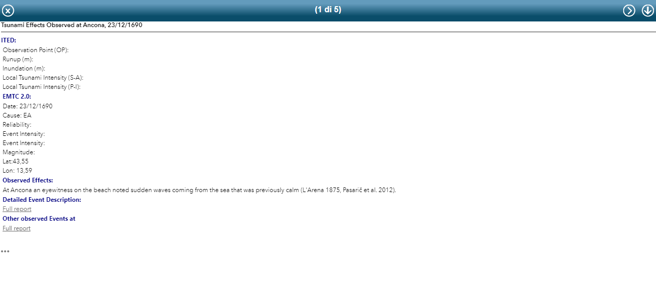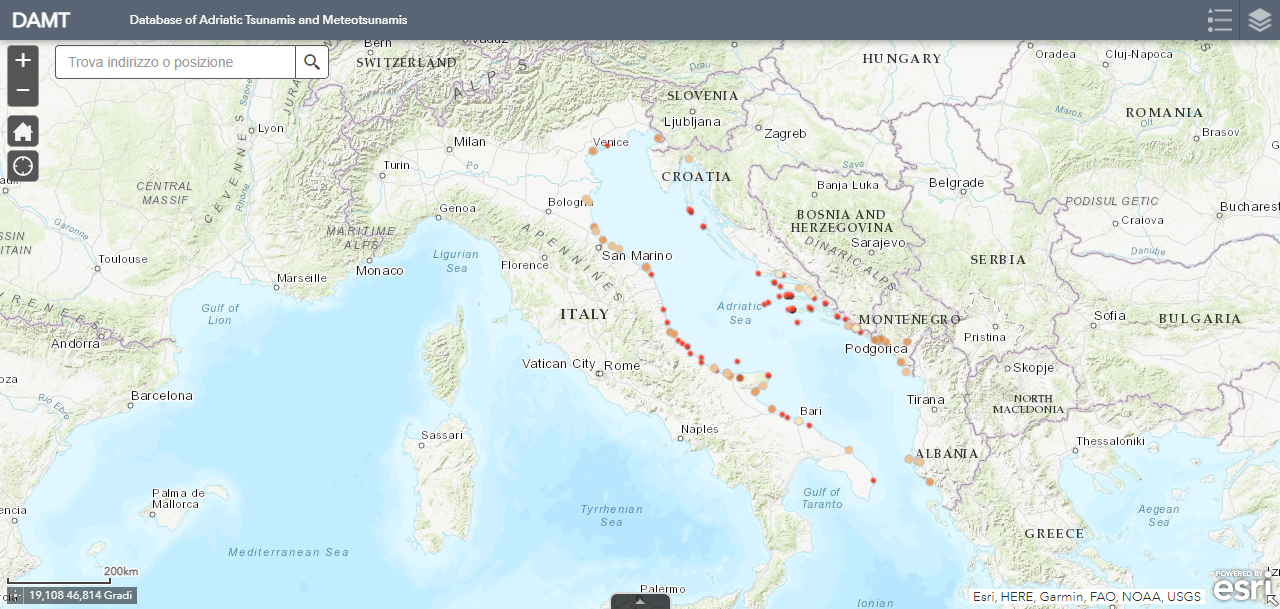 To query the Database in a simple and intuitive way, the researchers of INGV made a WebApp in ArcGIS-online environment, consisting of an interactive map that users can navigate to discover in detail the characteristics and effects of the tsunamis and meteo-tsunamis.