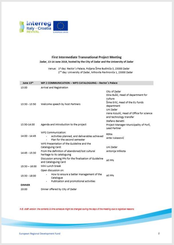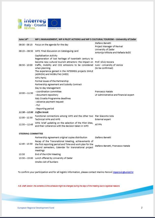June 14th: WP 1 MANAGEMENT, WP 4 PILOT ACTIONS and WP 5 CULTURAL TOURISM