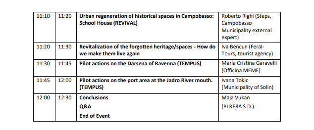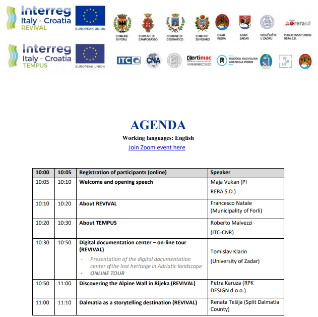 PI RERA SD for coordination and development of Split Dalmatia County is organizing REVIVAL project dissemination event together with TEMPUS project team. The main topic will be possibilities for revitalization of the forgotten spaces. The webinar will be available through the Zoom platform to anyone who want to hear more about using forgotten spaces for more balanced territorial development.