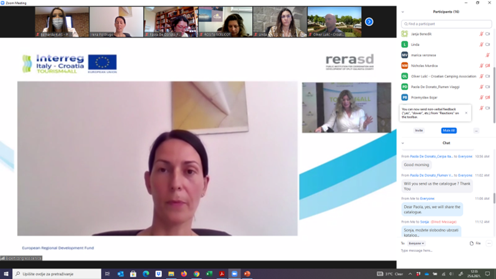 As part of the TOURISM4ALL project, the Public Institution RERA S.D. On June 25, 2021, organized a b2b meeting (business-to-business) that brought together project partners from Italy and Croatia and tour operators working with German, Polish, Slovenian and other markets, with an emphasis on accessible tourism. The response was good, attended by about 20 tour operators who established contacts, mostly from Croatia and Italy.